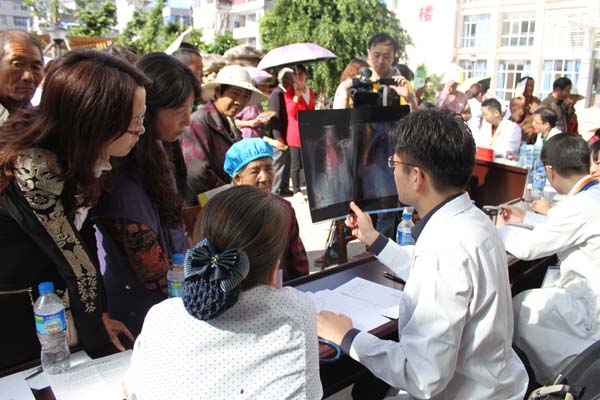 2014年8月31日至9月2日,中智公司經多方努力,協調上海市衛生計生委派遣同濟大學附屬同濟醫院,上海市同仁醫院等醫療專家團隊一行15人,赴公司定點扶貧地區云南省大姚縣開展義診培訓活動,由心血管類疾病(高血壓、心臟病)、風濕類疾病(類風濕、腰腿痛等)、代謝類疾病(甲狀腺等)等領域組成的專業資深醫療專家,結合當地常見病及培訓需求,對大姚縣縣鄉醫療機構的200余名鄉村醫生及管理人員開展了《醫療糾紛的防范與處理》、《院前急救的處置》等具有針對性的專題業務培訓,并會同當地縣醫院各科室醫生,選擇在金碧鎮集日當天,共為大姚縣600余名群眾開展醫療診治和醫療咨詢等公益活動。