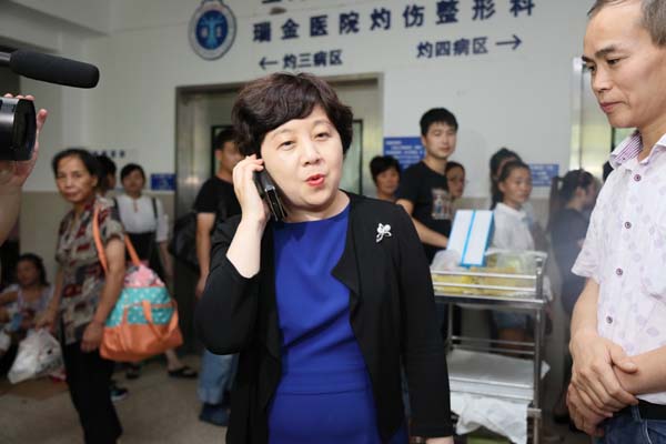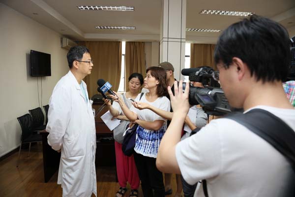 | 瑞金醫院灼傷整形科主任醫師張勤正在介紹王海濱的最新傷情情況 |